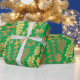 Bright Gold & Silver Christmas Tree Pattern Green Wrapping Paper