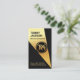 Overleaf, in a black cover, the gold logo is at the top followed by your prestigious name, contact details and a slogan caption option to publicise your services. Lettering here are in faux gold.