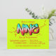 A messy bright neon green graffiti invitation fit for a nine 9 year old.