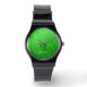 Bright green geometric mesh pattern Monogram Wrist Watch. Monogrammed Personalised gift watch accessory for him with your custom initial and name.