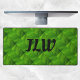 Bright fresh natural green leaves in a beautiful and dramatic pattern design creating a naturally unique abstract desk mat with personalised Initials or Monogram.