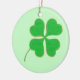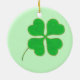 Painting of a bright green four leaf clover, shamrock, trimmed in gold dots, printed on both sides of ceramic ornaments. Can be customised. To choose a different background colour, click on Customise It, then on Edit, then on Background, and then on the colour of your choice.