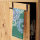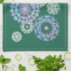 Beautiful green kitchen towel with bright modern decoration - winter watercolor snowflakes.