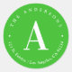 Bright Green & White Monogram Return Address Classic Round Sticker