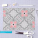 Beautiful tissue paper design featuring pink, white and black ornaments on a bright grey background.