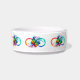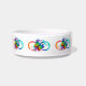 This is a heavy, durable bowl decorated with Tibbies of many colors, the perfect size for hungry/thirsty Tibs. The design is interesting and printing clear.