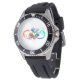 Has heft and feel of expensive stainless steel quartz wrist watches. Solid construction and good looks. Although it had a really top quality rubber strap, I substituted a stainless steel "Shark" style mesh strap, which I think is the most comfortable strap available. Perfect. True colors of original image. Clear, crisp image precisely aligned and spaced.