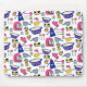 Bright Kitchen Utensils Chef Cake Baker in blue, pink and yellow on a white background.