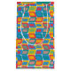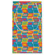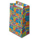 This gift bag has a mid-century modern design of bright colours that make rounded rectangles with other rectangles inside formed by a collection of lines.