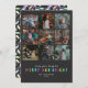 Feature your favourite photos from the past year on this fun holiday multiple photo card. It features a grid with space for nine different photos over a brightly coloured "merry and bright" greeting on a slate coloured background. The back of the card has a colour coordinating illustrated Christmas lights pattern.