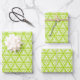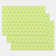 A set of three decorative 19x29” wrapping paper sheets featuring clusters of intricate, bright lime green swirls in a triangle pattern for a sophisticated gift presentation collection, and diy craft projects