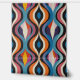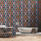 Bold colourful and bright retro feel geometric ogee pattern. Bright shades of yellow, orange, red, pink, blue and lavendar. Retro yet still modern this bold pattern is perfect for accent walls of maximalism and maximalist decor. Peel and stick wallpaper lets you upgrade your small space home decor and personalise your rental with your unique design aesthetic. No more boring white boxes!