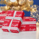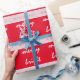 Bright Merry Script Red Christmas Family Name Wrapping Paper. Add your name and make a unique gift wrapping paper.