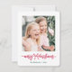 Send stylish joyful greetings and share 5 of your favourite pictures with a festive custom photo collage Merry Christmas card. This template is simple to personalise and the bright cranberry red, white and green colours can be changed with the Zazzle Design Editor tool. The modern minimalist design features trendy script "merry christmas" with a cute ribbon & bow and a square photo collage "gift" on back. Family and friends will love displaying this elegant colourful card. Merry Christmas!