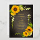 Bright chic yellow sunflowers on a rustic chalkboard background wedding foil invitation. A modern take on a classic invitation.