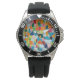 This design features an image of ceramic tiles in the form of a mosaic in various bright colors.
