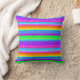 Bright multi colour eccentric style striped throw pillow. Artistic creative striped pattern home decor pillows. Vibrant colour tones stripes eclectic home decoration pillow. Bright colourful eccentric style striped and dotted throw pillow. Unique original multicolor artsy stripes home decor.
