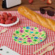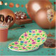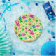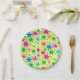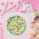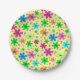 Bright multi-coloured chamomile flowers on a yello paper plate