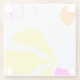 This glass coaster has an organic botanical image printed in yellow, pink and orange on a lavender background.