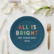 Bright colourful navy blue fun modern Christmas party decor family all is bright paper plate.