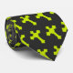 Bright Neon Yellow Crosses on a Black fabric Tie