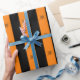 Bright Orange and Black Halloween Striped Pattern Wrapping Paper