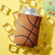 Pictured on this stubby cooler in full print is a bright orange basketball,