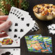 A bright orange koi fish swims among blue water and green lily pads and yellow flowers in a photographic image of mosaic tile art on this pretty playful deck of playing cards. Personalise these colourful playing cards with Initials or a name. This is one of multiple coordinating ceramic tile design with original art photography by JLW_PHOTOGRAPHY.