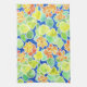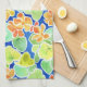 Bright Orange, Red, Yellow Nasturtiums on Blue Tea Towel