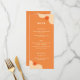 Bright Orange Retro Summer Wedding Menu. Customise with your choice of starters, entrées, and desserts. Please message the designer if you need help making changes.