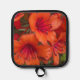 Safely handle baking trays, cookie sheets and muffin tins from the oven with this pot holder with black trim that features a colourful photo image of bright, orange Rhododendron blooms. A lovely, floral design! Select your pot holder backing style.