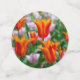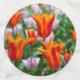 Cute Bright orange tulips in the park on a sunny day in the garden. The photo was taken in June 2022. The poster is suitable for interior design.