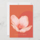 A modern wedding invitation in with trendy bright orange text and details in grapefruit red. This shade of orange is called Verona Sunset. Details in faux gold, a silhuette of a delicate flower. Modern typography and photo in arched shape.