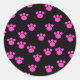 Bright Pink and Black Paw Print Pattern. Classic Round Sticker