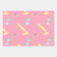 Bright pink and fun pencil and paintbrush wrapping paper sheet