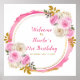 Beautiful birthday party poster with a bright pink and gold faux glitter frame with floral flower arrangements. Perfect for a birthday party. The words can be changed to suit your own details or requirements