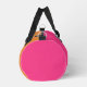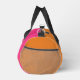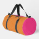 Orange letters for your monogram appear on the bright pink front side of the duffle bag. This colorblock duffle bag has two bright pink sides and two orange sides. All text can be edited or deleted.