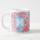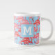 Bright Pink Flamingos On Blue | Add Your Initial Large Coffee Mug