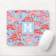 Bright Pink Flamingos On Blue | Add Your Initial Mouse Mat
