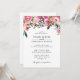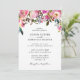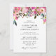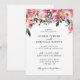 The invitation is adorned with a beautifully detailed pink floral border, featuring a mix of blossoms and greenery. The vibrant hues of pink create a striking contrast against the crisp white background, making the design pop.