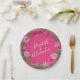 Bright Pink Floral Wedding Paper Plate