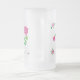 Bright Pink Flower Motif Faux Applique on White Frosted Glass Beer Mug