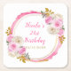 Beautiful birthday party coaster with a bright pink and gold faux glitter frame with floral flower arrangements. Perfect for a birthday party. The words can be changed to suit your own details or requirements