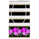 Features a lovely bright pink rose border, and a horizontal stripe pattern in black, white and gold.