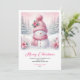Celebrate the season with this cute watercolor pink coquette snowman kids Christmas card, set in a magical snowy forest. Editable text lets you personalize instantly, and the digital download provides an easy, fast, and festive holiday greeting.