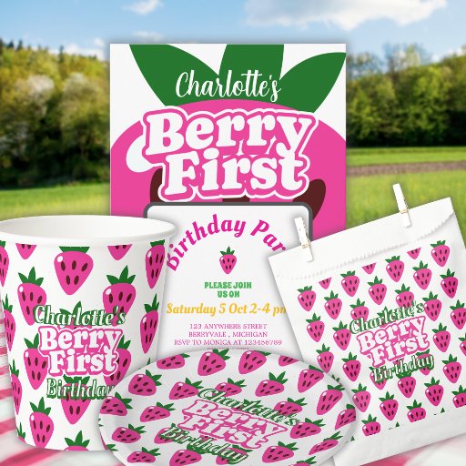 Patterned Pink Strawberry Berry First BirthdayDesigned by Hayley G