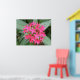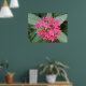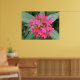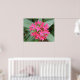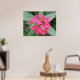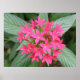 This beautiful poster features a detailed photograph of a bunch of beautiful bright pink tropical flowers, surrounded by dark green leaves. These pretty flowers form a circle in the middle. The photo was taken using macro photography for a detailed result.