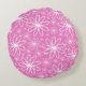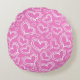 BRIGHT PINK WITH WHITE HEARTS AND FLOWERS ROUND CUSHION