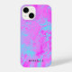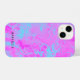 Bright poured paint style abstract pattern in shades of bright turquoise blue and hot pink. Personalise with your name or message in black font.