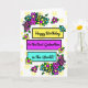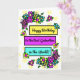 Hand drawn whimsical brightly coloured folk art style flower and butterfly purple, yellow and teal Happy Birthday Card for your Godmother.